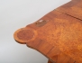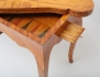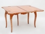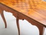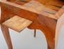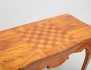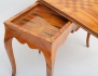 Sverige 1700-talets mitt, alrot, alm och fruktträd, övre skivan med schackbräde, utfälld skiva med skålningar för spelmarker, konturerad skiva, ljusbrickor, höjd 74, bredd 112, längd 56x2 (torksprickor, smärre fanérbortfall, en dragknopp med skada)