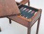 Stockholmsarbete c.1800, mahogny, sarg med pärlstav, raka kälade ben, ljusbrickor, invändigt filt för brädspel, höjd 78, bredd 94, längd 46x2 (fläckar, äldre lagningar vid gångjärn)