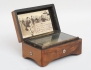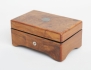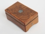 schatull i valnöt, mässing och vitmetall, fungerar vid katalogiseringstillfället, höjd 6,5, bredd 13,5x8