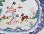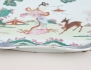 Qianlong 1736-1795, rokoko, blåvit underglasyrdekor, spegel med polykrom emaljdekor i famille rose i form av kvinna och hjort, 45,5x39,5 (brätte med spricka och smärre nagg)