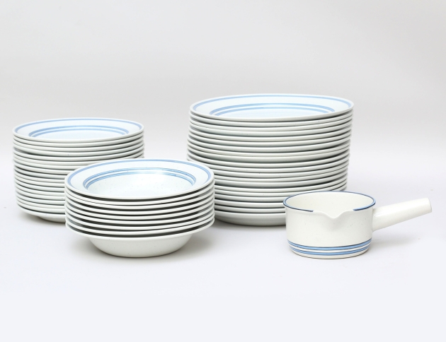 servisdelar 48 stycken "Dart", 20 mattallrikar, 9 djupa, 18 assietter samt såskanna, diameter 19,5-24