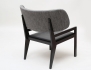 stol "Cartoon" för Swedese, modellen formgiven 2008, svartlaserad, kallskumsdyna i svart skinn, dekorplugg medföljer löst, höjd 81, bredd 86