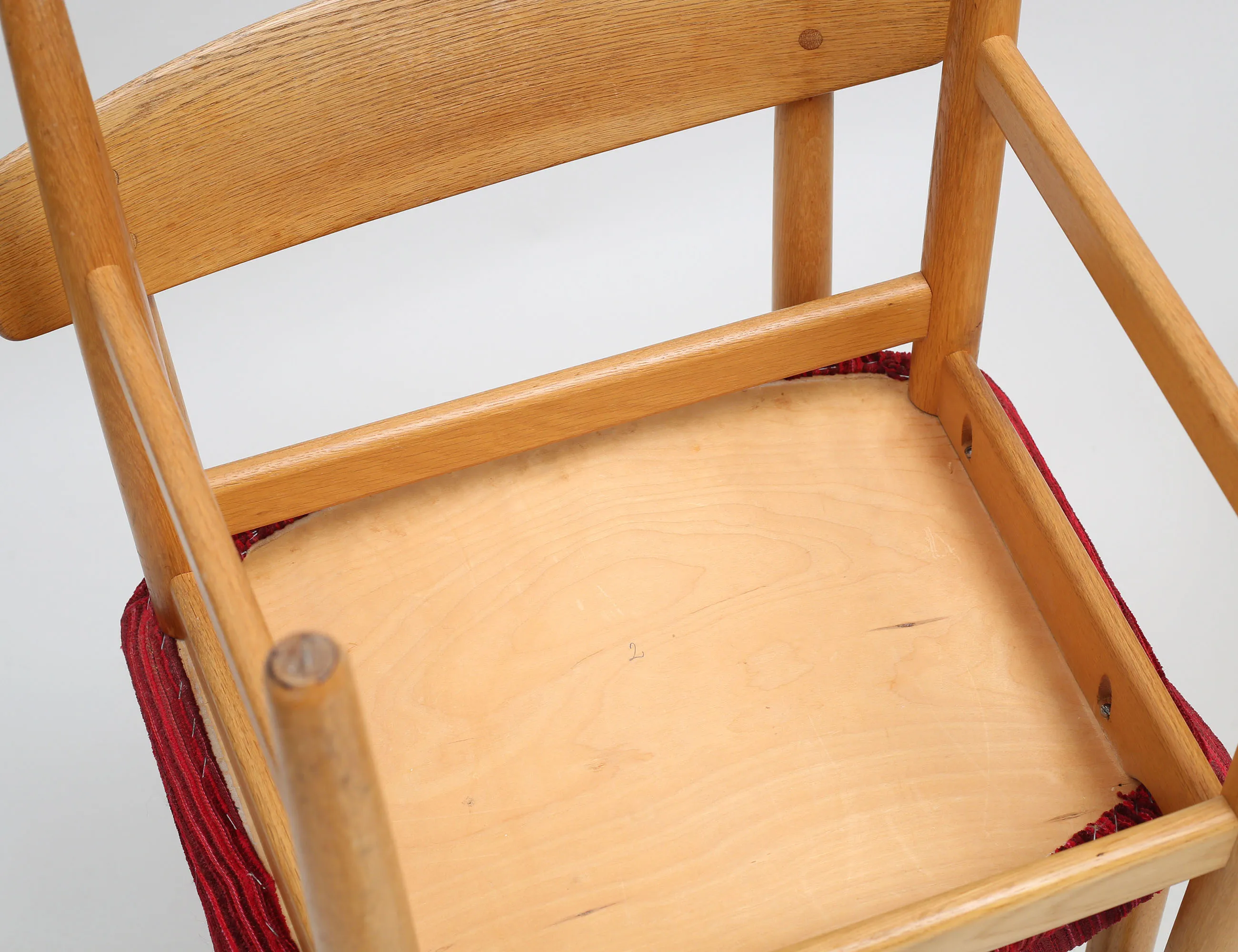 Danmark 1900-talets andra hälft, stomme i ek, fast stoppad sits, höjd 74, bredd 51 (smärre bruksslitage, sits med mindre fläckar)