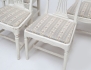 gustavianska herrgårdsarbeten, genombruten ryggbricka i kopplat spjälknippe med skuren axdekor, bemålade, kopplade ben, lös stoppad sits, höjd 90