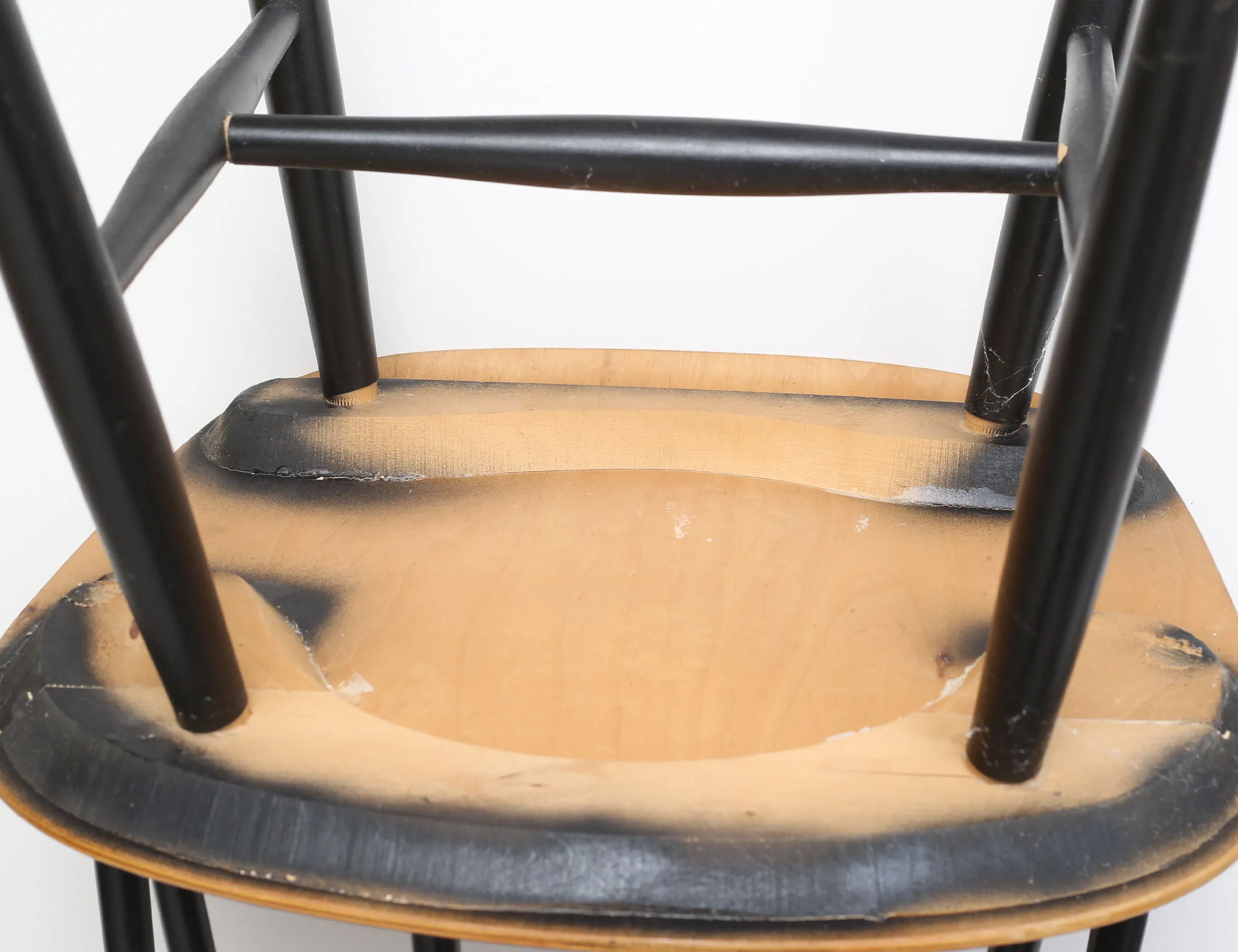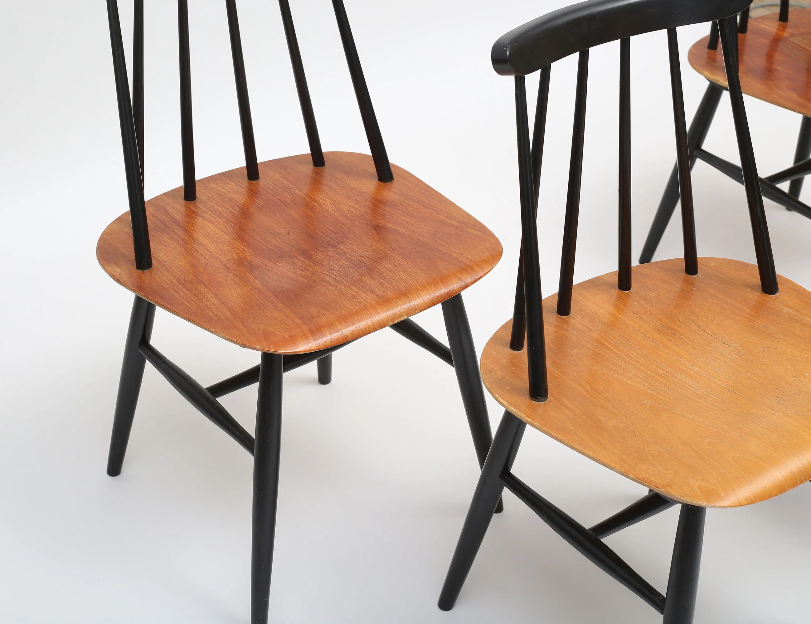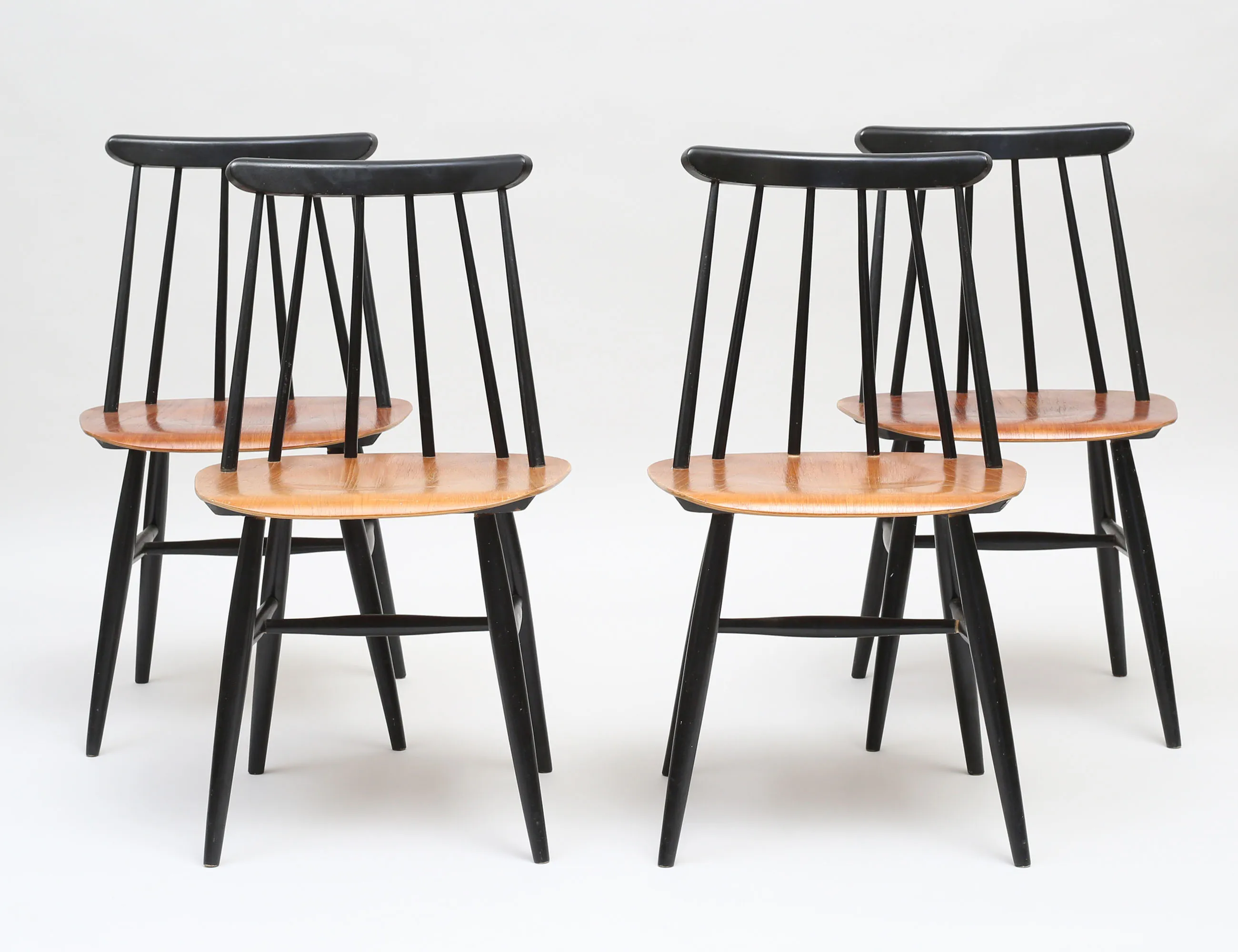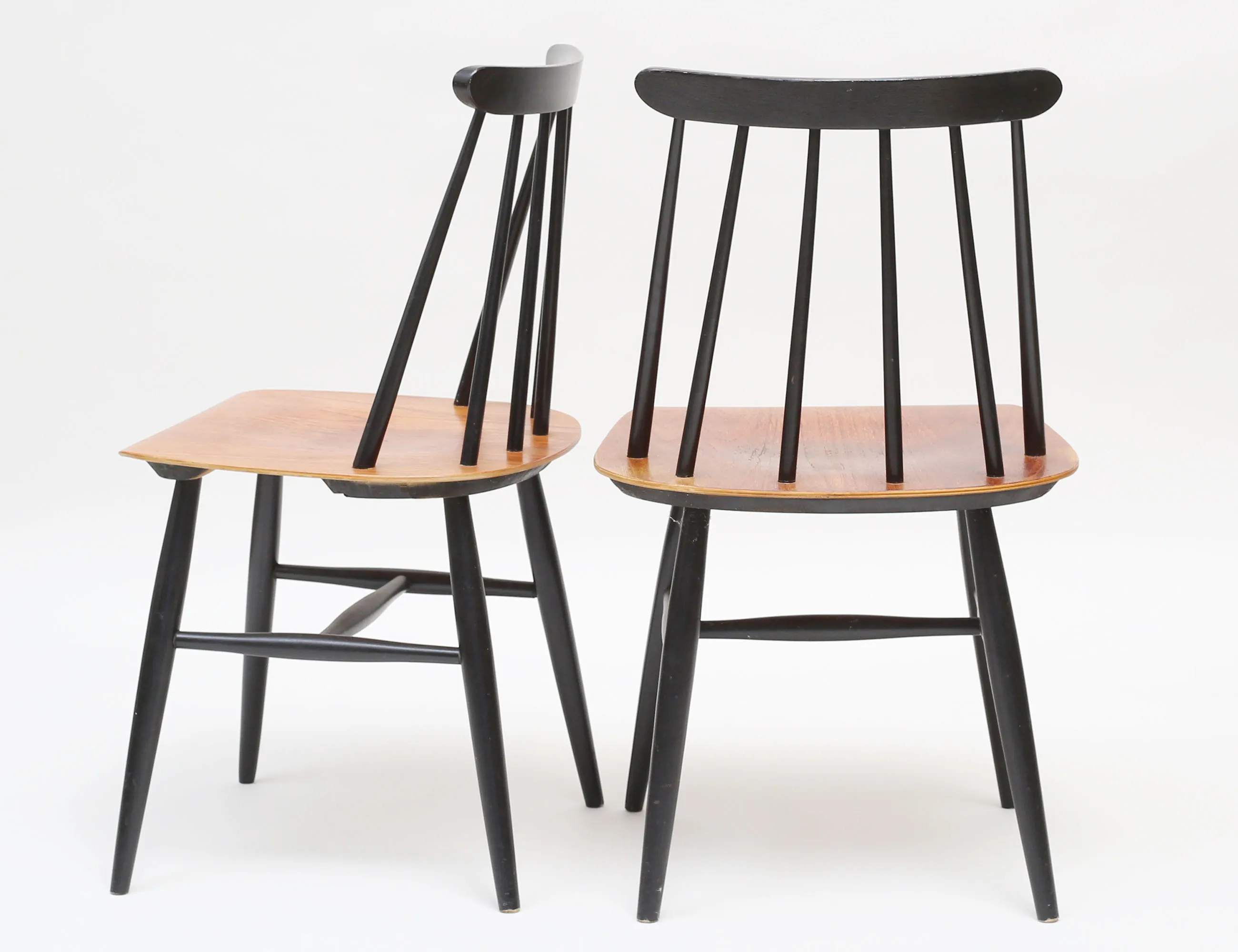 Ilmari Tapiovaara Edsbyverken 1900-talets mitt, svartlackerade med sits i teak, sitthöjd 44, höjd 78 (bruksslitage)