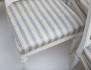 Stockholmsarbeten sent 1700-tal, träskuren dekor av bandfläta och fleuroner, runda överkragade ben med kannelyr, bemålade, fast stoppad sits och rygg, en stol med etikett - Stockholms Hallstämpel, höjd 92, bredd 50 (sliten och fläckad klädsel)