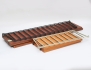 2 hyllplan i teak, konsoler i grålackad metall, höjd 52, bredd 20x40, 2 hyllplan i teak, konsoler i svartplastad metall, höjd 76, bredd 20x80 (smärre bruksslitage)
