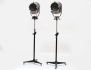 K. Weinert Berling 1936, ställning på hjul, från Orrefors glasbruks fotostudio, fotograf John Selbing, höjd 205, bredd 50, strålkastarens diameter 25 (bruksslitage, ej funktionstestade)