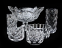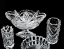 2 skålar och vas "Sofiero", Gunnar Cyrén Orrefors, höjd 8, 16, 20, skål Sven Palmqvist Orrefors, höjd 8, diameter 20, oval skål på fot, höjd 21, bredd 31 (obetydlig fotnagg)