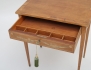 1900-talets första hälft, mahogny med intarsia i ljusare träslag, en låda med fackinredning, fothylsor i mässing, höjd 70, bredd 60, djup 40