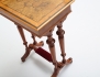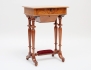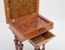 1800-talets andra hälft, fristående, valnöt och valnötsrot, låda med fackinredning, uppfällbart lock, förvaringsutrymme under låda, fotstöd med fast stoppning, höjd 74, bredd 51