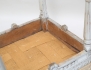 gustavianska herrgårdsarbeten, nedåt avsmalnande ben med kannelyrer, träskuren dekor av bl a blomsterlingor, bårder och fleuroner, bemålade, fast stoppad sits, höjd 41, bredd 43 (renoverade, tyget med skador)