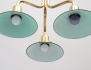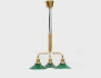 Börje Claes Norlett Elit 7851, mässing, tre ljusarmar med gröna glaskupor, etikettmärkt, höjd 80, diameter ca. 45