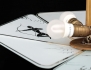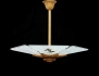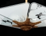 Sverige 1930-tal, oidentifierad formgivare, stomme med träskuren bronserad dekor, se glasskärmar med syraetsad dekor av grenverk respektive bågskytt, höjd 53, diameter 65
