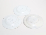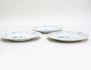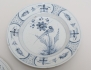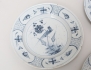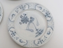 varav 2 daterade 1757, Rörstrand fajans, spegel med dekor i starkeldsblått av fågel på kvist, kant med dekor av humle, diameter 22,5 (en lagad, nagg, sprickor, retuscher)