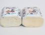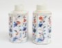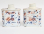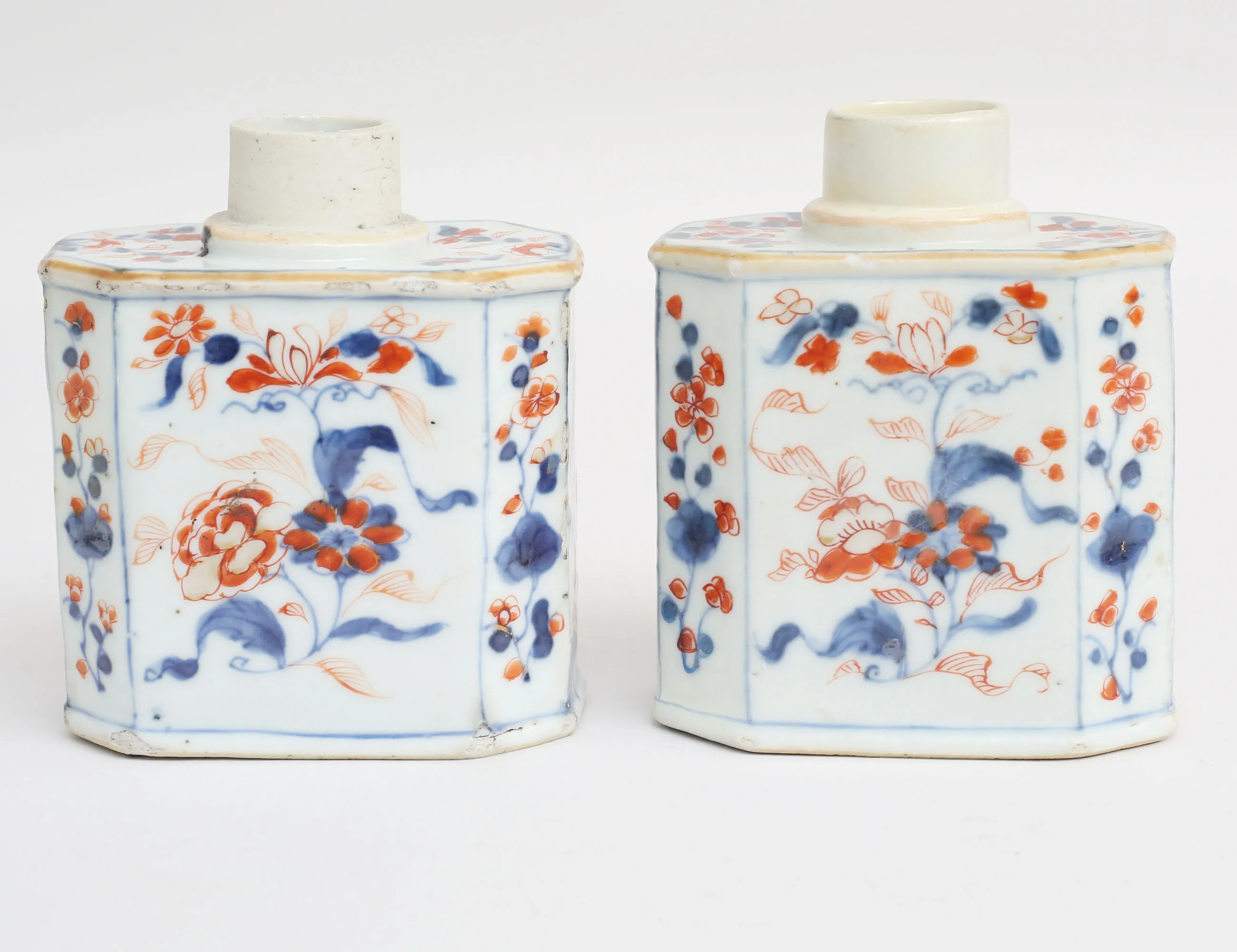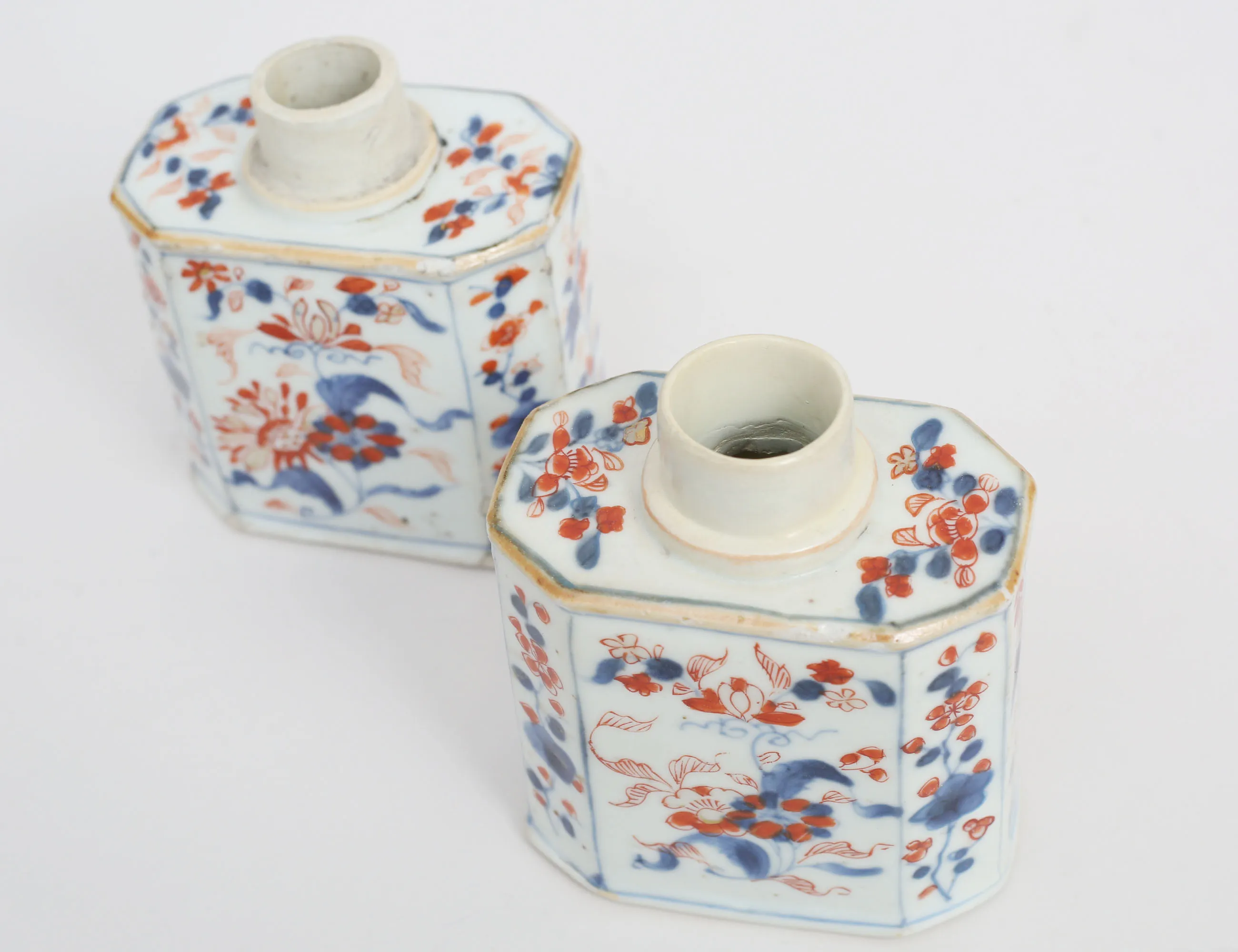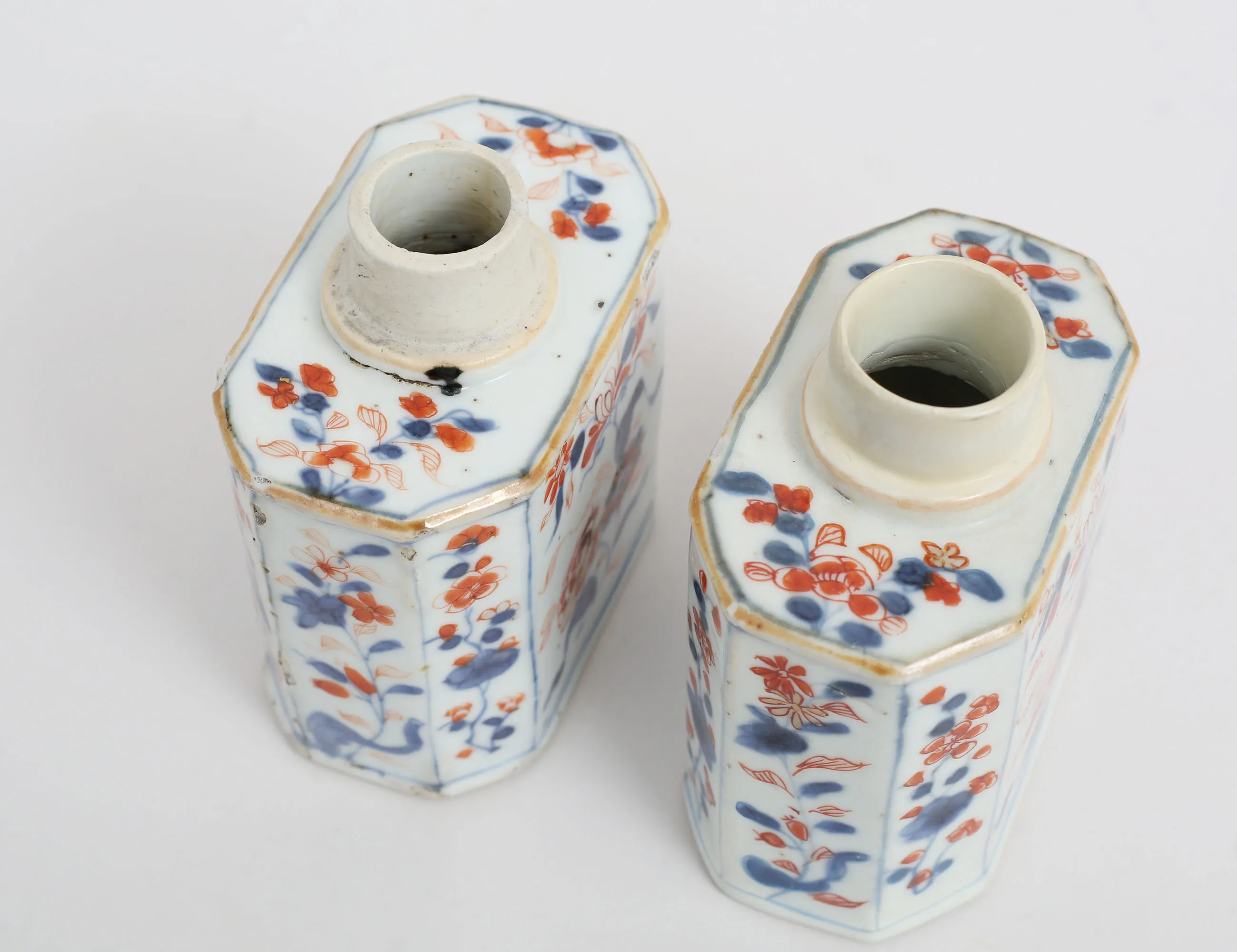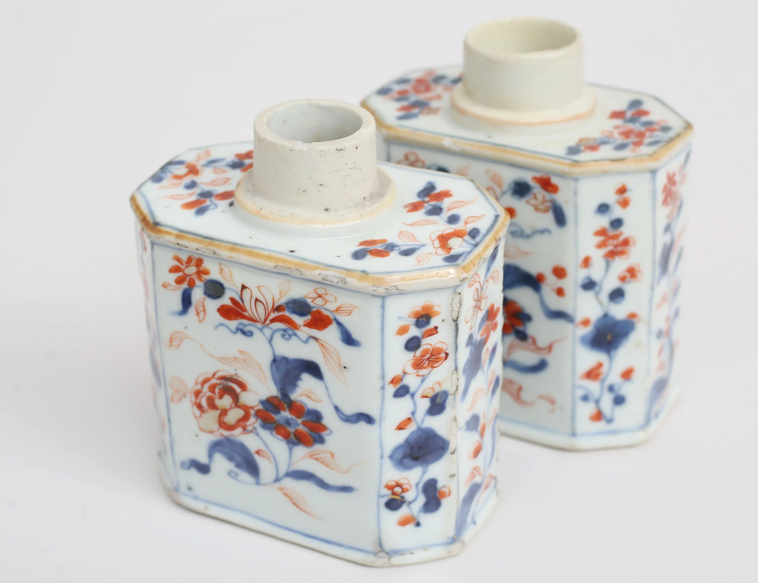 Qianlong 1736-1795, imaridekor i järnoxidrött på blåvit underglasyrfond, oktagonal form, höjd 11, bredd 9x5,5 (en öppning med konstlagning, en med omfattande glasyrnaggar)