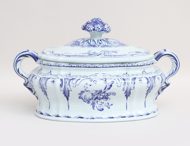 tillverkad för Rörstrands 250-årsjubileum 1976, blå dekor efter originalet 1758, nummer 1409/1800, bredd 37