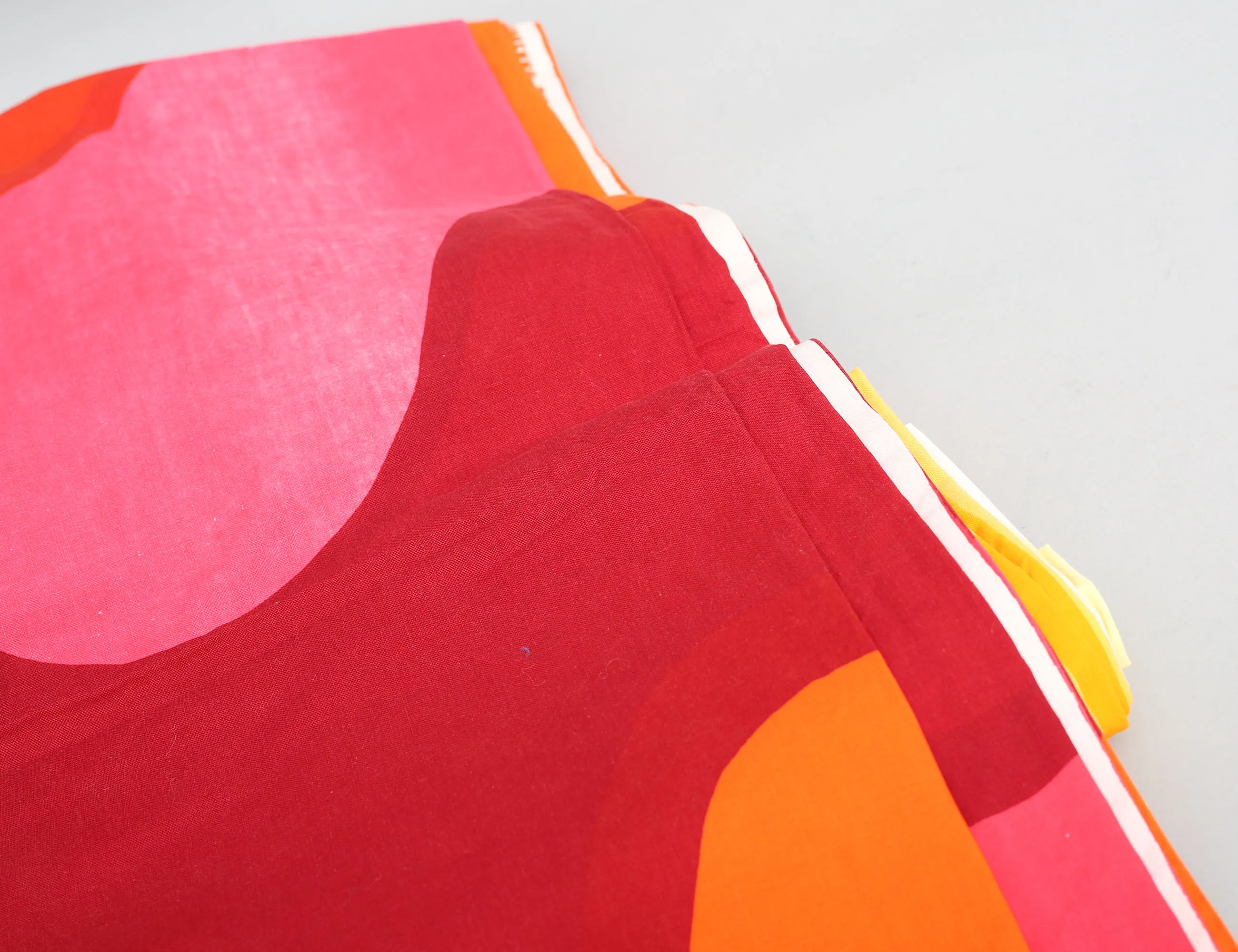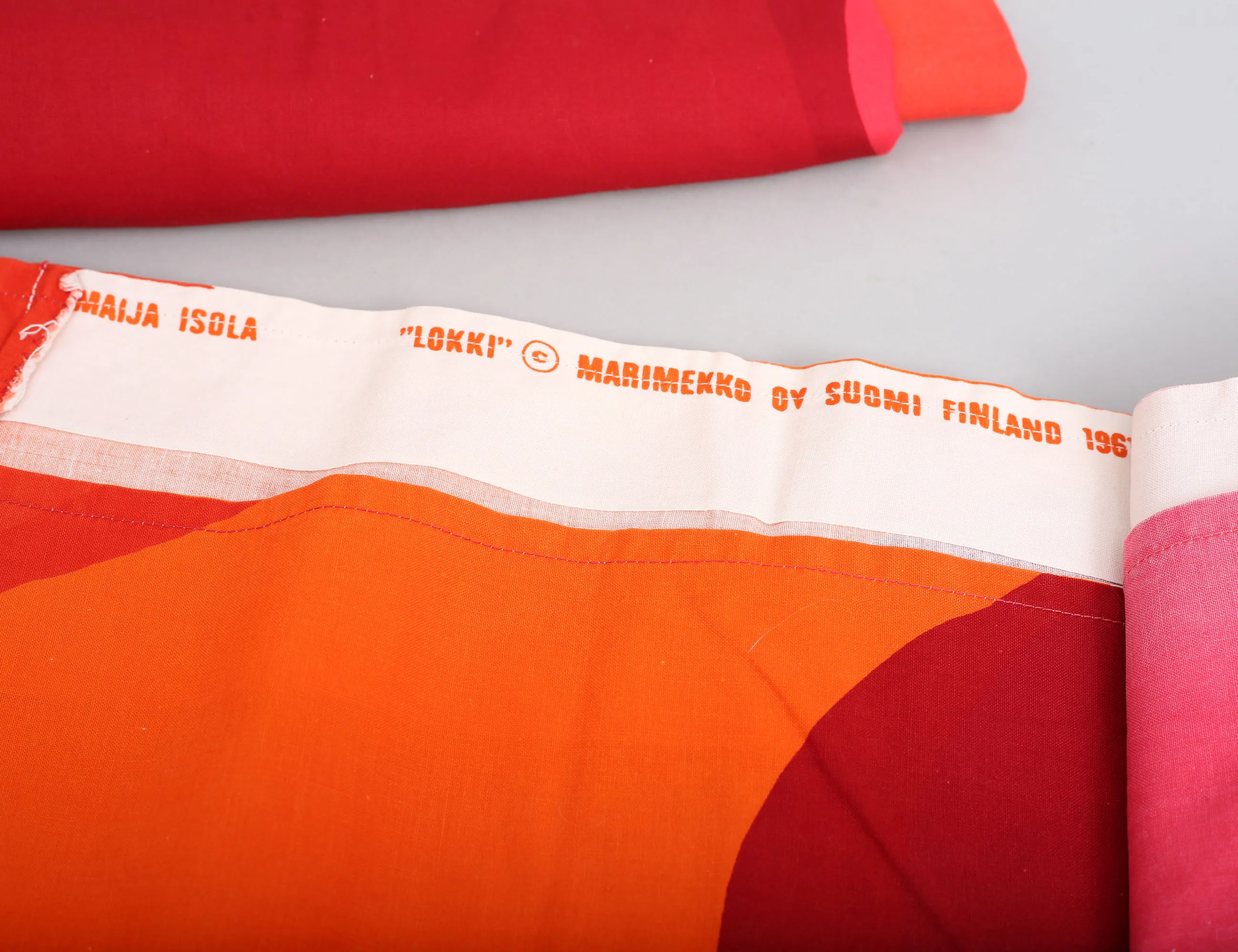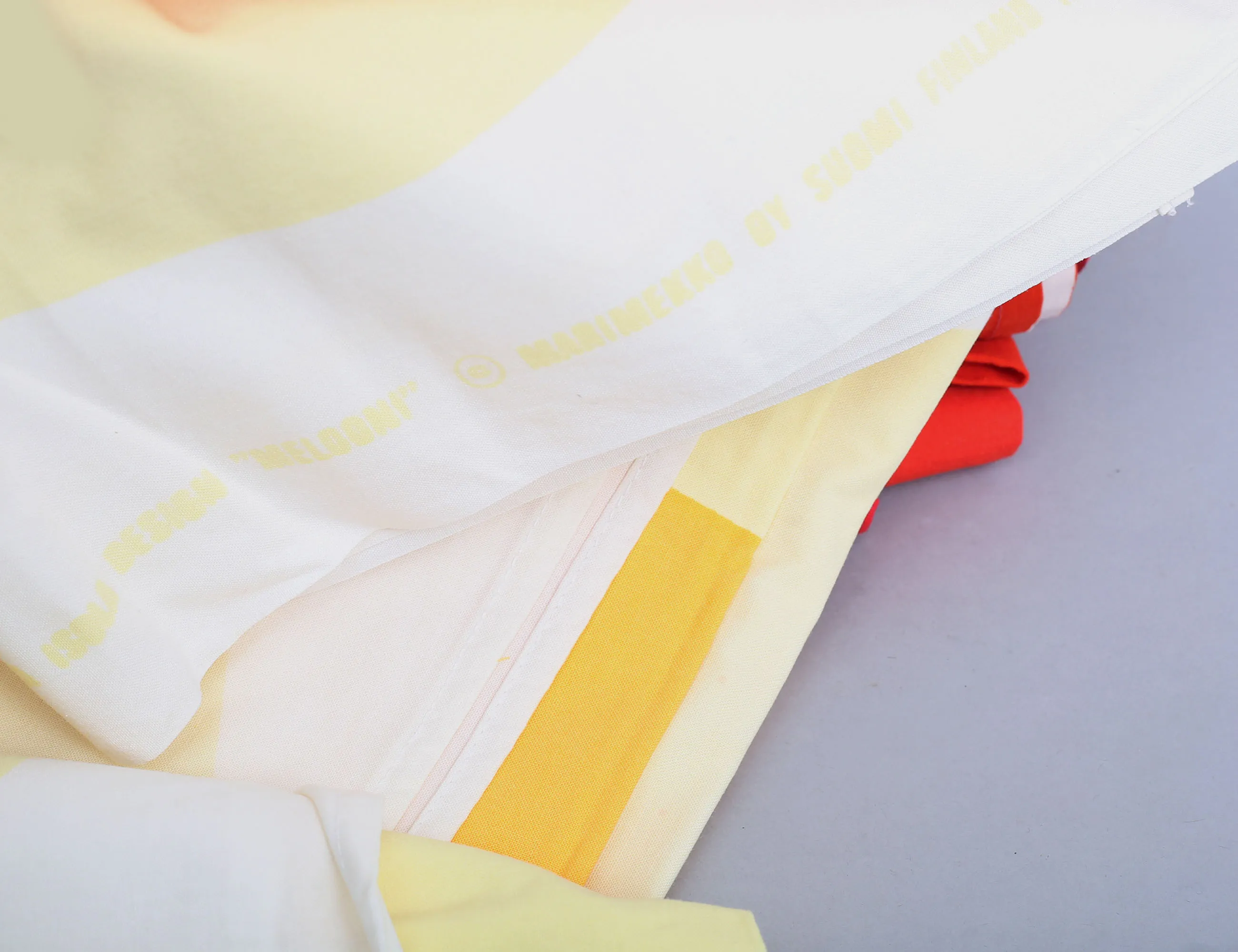 Maija Isola "Melooni", duk bomull, 240x135, 1 par gardinlängder "Lokki", bomull, 225x126, 2 stuvbitar i samma tyg, Marimekko Finland