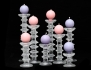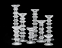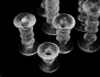 ljusstakar 8 stycken "Festivo", formgivna 1967, gjutet klarglas, samtliga etikettmärkta, original ljus i rosa och lila medföljer, höjd 8-31 (den mindre med tillverkningsdefekt på foten)
