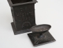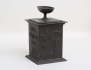Hällefors Bruk daterad 1838 - märkt D.S. Högberg, samt devis "Inter bibendum large fumandum", gjutjärn, märkt HF i godset, höjd 24, bredd 15x15 (urnan saknar lock)