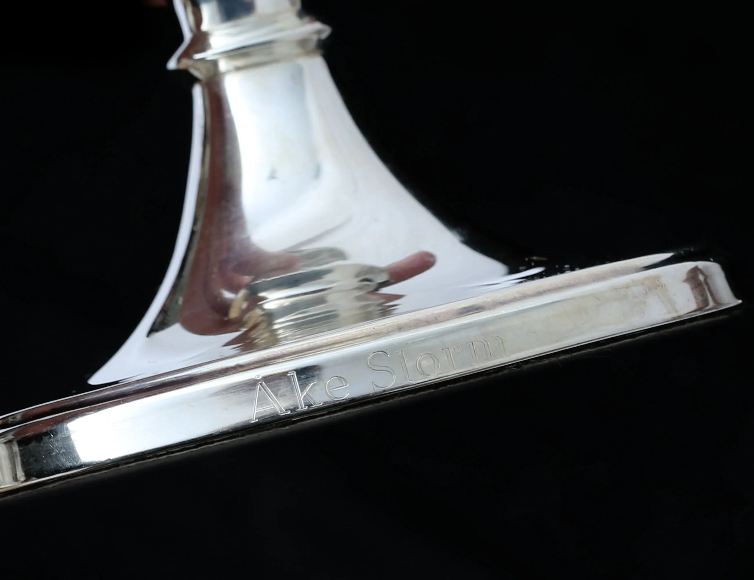 ljusstakar 1 par silver, signerade T. Eldh, Ceson Göteborg 1995, fyllda bottnar, höjd 18 (inskription utmed fotplattan)