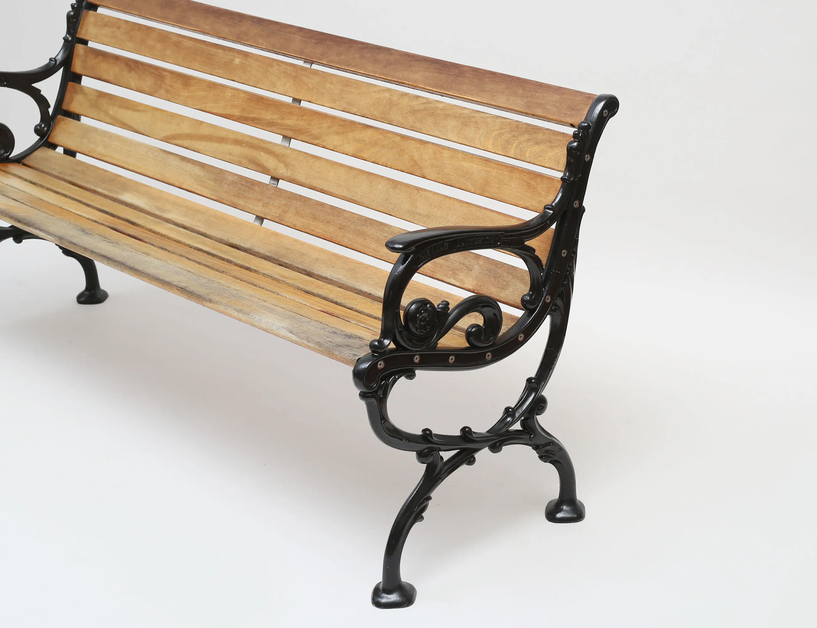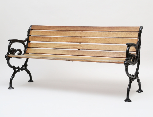 1900-talets senare del, så kallad stations soffa, bemålat gjutgods, träribbor, höjd 55, bredd 155 (smärre bruksslitage)