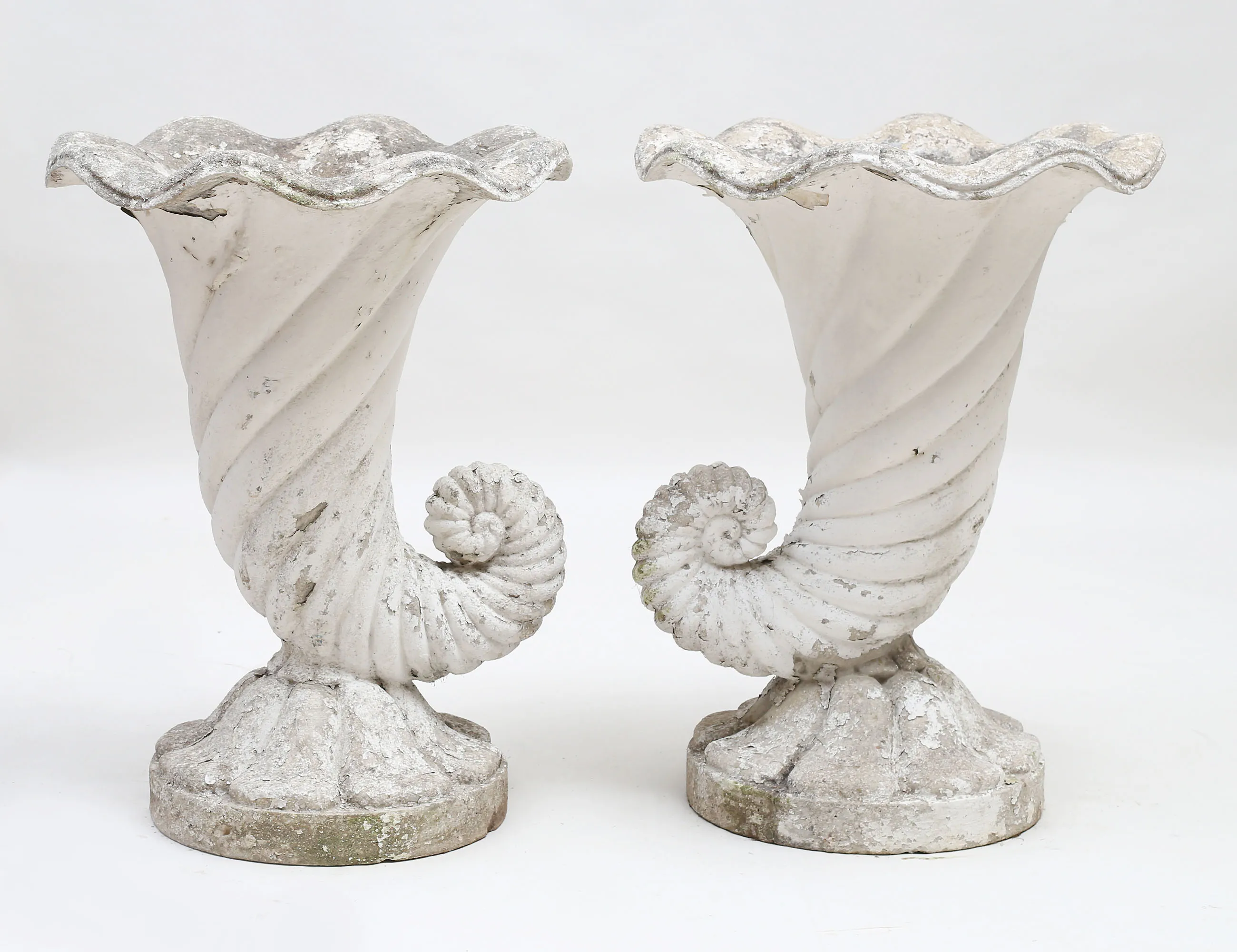 i form av ymnighetshorn, gjuten ornamenterad stenmassa senare bemålade, proveniens: Ryningsbergs säteri, höjd 82, diameter 61 (omfattande färgbortfall, väderpatinerade)
