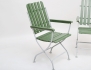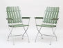 bryggerimodell 1900-talets mitt, grönmålade träribbor, stativ i gråmålad metall, hopfällbara, höjd 97, bredd 55 (en ribba lös, smärre bruksslitage)
