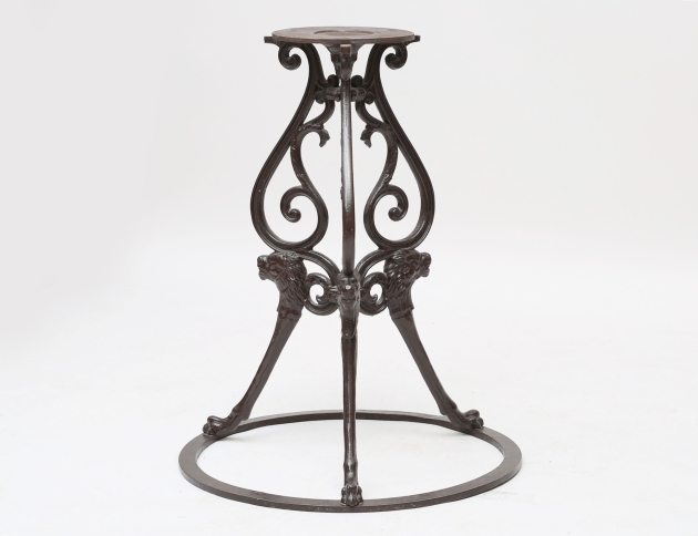 svärtat gjutjärn, ornamenterad dekor av lejonhuvuden och lejontassar, höjd 74, diameter 24/60
