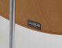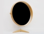 bordsspegel Luxus 1900-talets andra hälft, ek, justerbar spegel, lös tregrenad fot, etikettmärkt, höjd 56, diameter ca. 45 (foten med limrester)