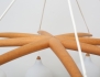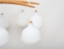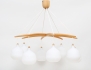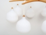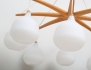 takarmatur Luxus 1950/60-tal, "Spindeln", modellen formgiven 1952, oljad ek, 8 ljusarmar med kupor i vitt opalin glas, etikettmärkt, höjd 80, diameter 80