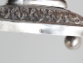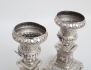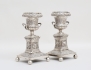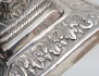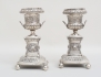 Italien 1857, kvadratisk fotplatta på kulfötter, reliefdekor av bla. akantus och blommor, vikt ca. 870 gram, höjd 26, bredd 14