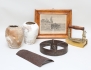 troligen östra medelhavsområdet ca. 1000 före kr., höjd 18 (en med sprickor), strykjärn 1700-tal, mässing, höjd 17, rivjärn och kakform 1800-tal, järnplåt, längd 30, diameter 24, kopparstick i björkram, 32x27