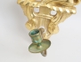 träbakstycke med skulpterat och förgyllt gips i form av sfinxer, delvis bladguld, grönpatinerade vingar, ljusarm i mässing, höjd 33 (smärre avslag vid infästningen av ljusarm)
