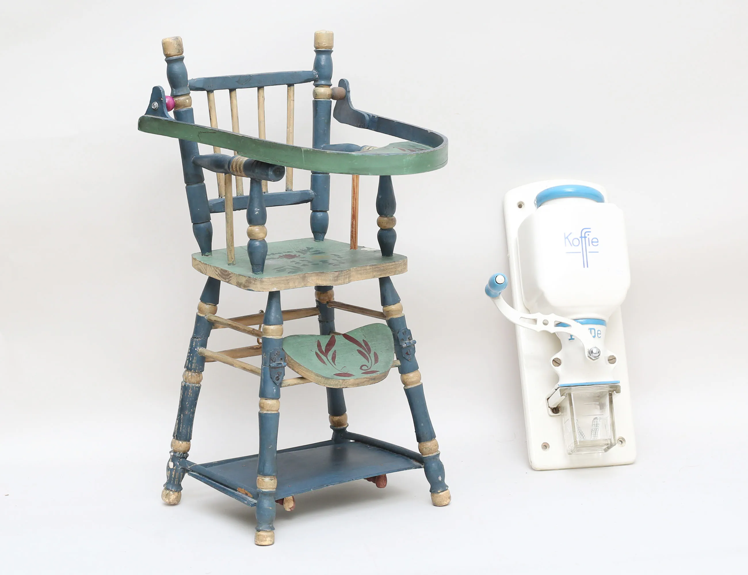 Peter Dienes Tyskland, höjd 32, dockstol med allmogedekor, Tyskland, höjd 50 (2)