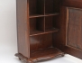 mörkbetsat trä, skuren dekor, dekorelement i mässing, två hyllplan med fack, höjd 64, bredd 37, djup 19
