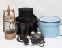 1900-talets första hälft, höjd 22, plommonstop och cylinderhatt i askar, 1900 -talets första hälft, stormlykta "Stella", fotogen, höjd 48