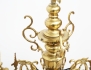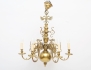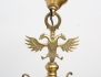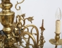 ljuskrona barockstil 1900-talets mitt, gelbjuteriarbete, mässing, sex ljusarmar, dekor av tulpaner, eldsflammor, krönande dubbelörn, signerad, höjd 65, diameter 65 (tre övre dekorelement saknas)