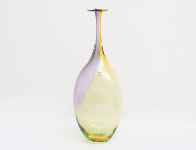 polykromt tonad glasmassa, signerad och numrerad 7048840, etikettmärkt Artist's Choice Kosta Boda, höjd 45
