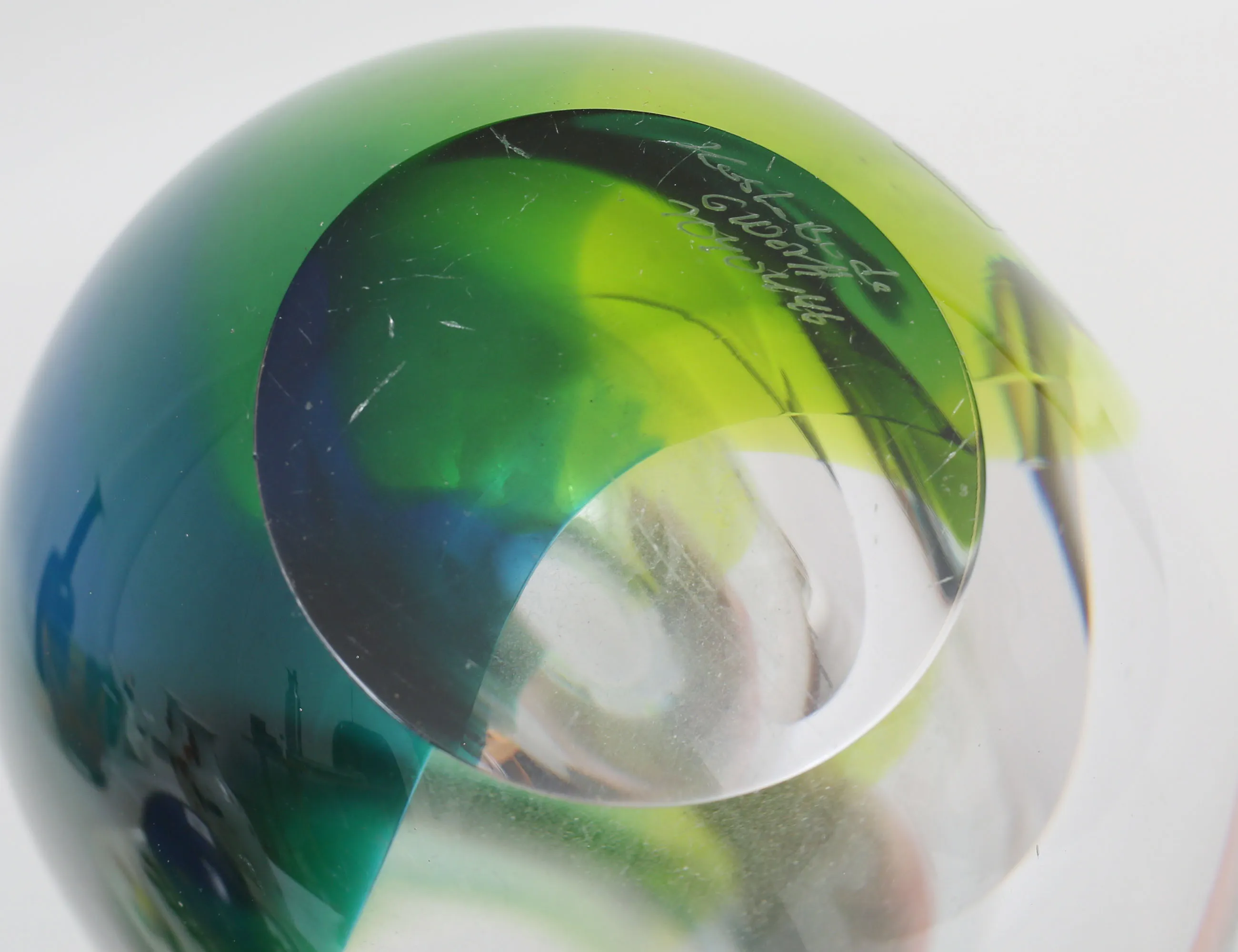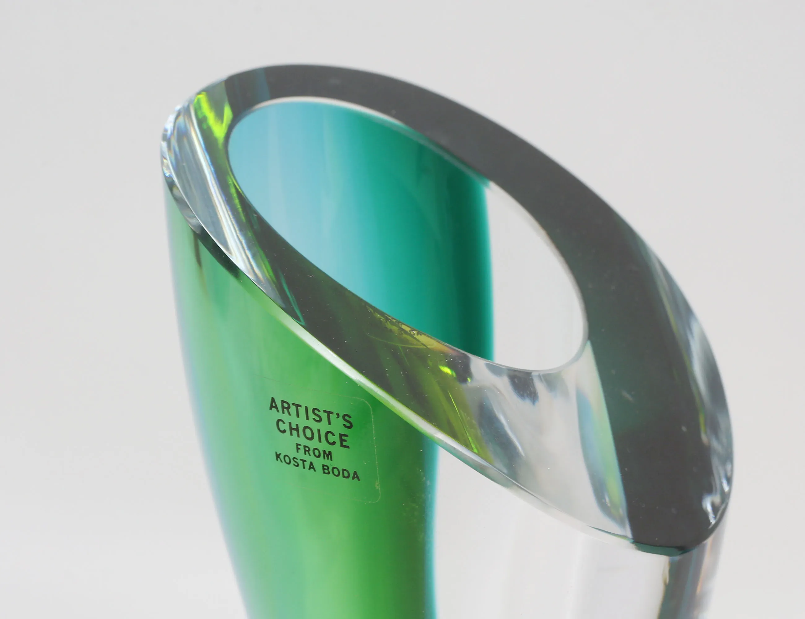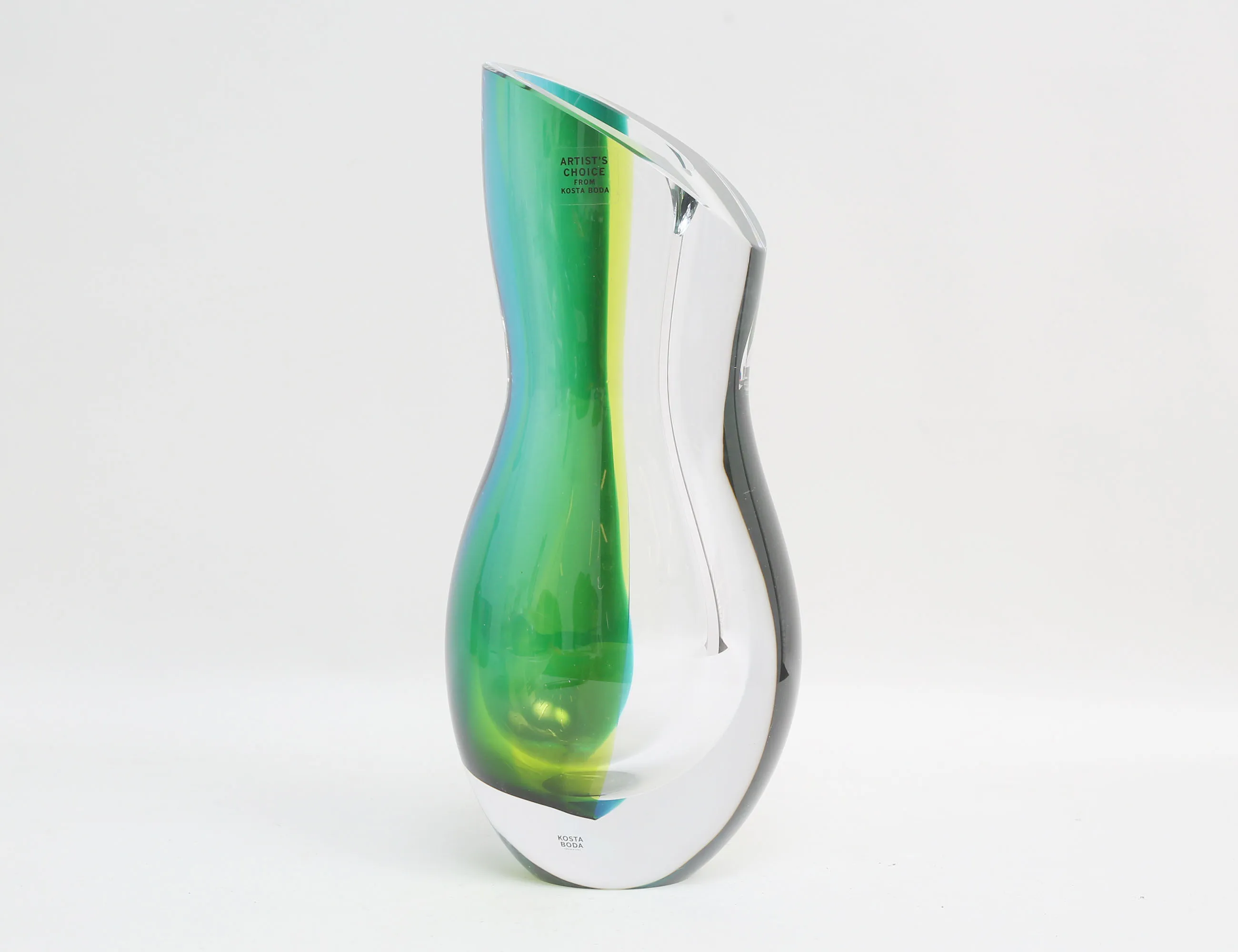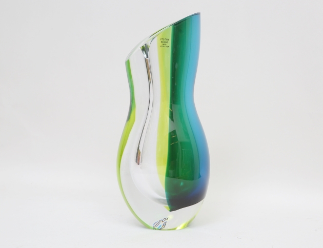 klarglas med gröna och blåa inslag, signerad, höjd 28,5