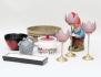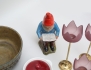 glaserat stengods, höjd 11, 3 ljusstakar mässing och glas, höjd 17-25, skål keramik, Winblad Alingsås, diameter 24, skål Ulrica Hydman Vallien Kosta Boda, höjd 9, tomte bemålad keramik, höjd 34, krus med lock Rörstrand, höjd 12, fat Deco Helsingborg, längd 23