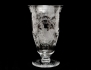 glas, högklassig rikt graverad dekor av uggla i oval omgiven av växter, verso gravyr "Hanna 1925", osignerad, höjd 20, diameter 11,5 (mynning med micronagg, smärre skrapmärke)