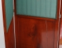 1800-talets första hälft, pyramidmahogny, mellanparti med svarvade detaljer, förgylld träskuren dekor, övre halvan med spänt grönt siden, höjd 182, bredd 57x3 (171) (2 delar med torksprickor)
