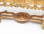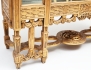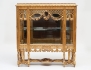 rikt träskuren förgylld dekor, bakstycke, botten och skiva i spegelglas, ett hyllplan i glas, öppningsbar på sidorna med dörrar, etikettmärkt, höjd 120, bredd 113, djup 35 (nyckel saknas, smärre bruksslitage)