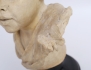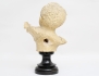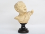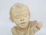 skulptur i form av pojke med fjäril, patinerad lera, monterad på svart svarvad träsockel, signerad 1885, höjd 34 (fjäril med avslag)