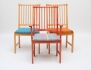 stolar 2 stycken samt 1 karmstol "Furubo", furu respektive rödbetsad furu, fasta stoppade sitsar, sitthöjd 44, höjd 92, proveniens: Yngve Ekströms kvarlåtenskap (bruksslitage)