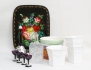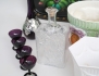 Gustavsberg, höjd 13,5, ytterfoder jugendstil höjd 17, likörservis 5 delar, ametistfärgat glas med tennmontage, höjd 8/28, bricka Ryssland 45x35, plunta med propp glas