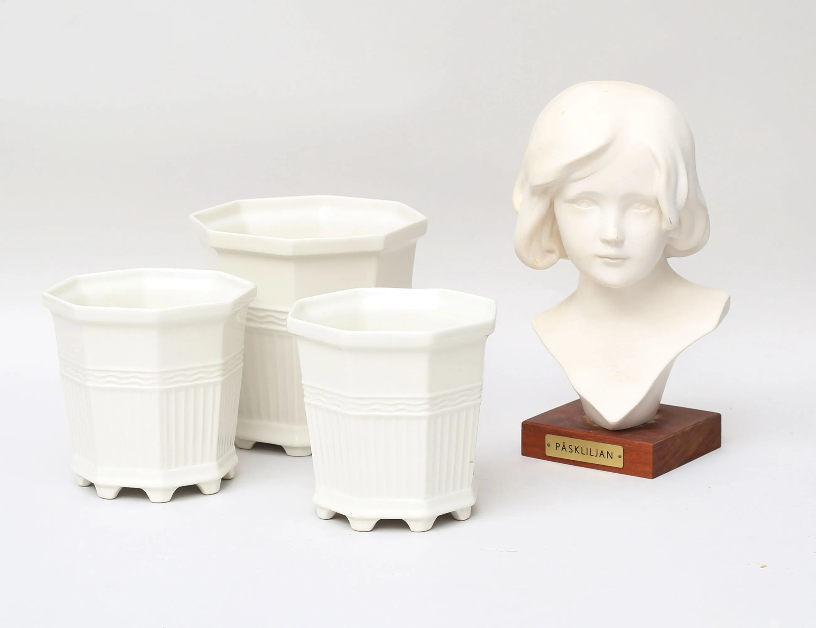 2+1, Prins Eugen Gustavsberg, höjd 13/15, skulptur "Påskliljan", efter Gewasio Bernandi, gips, träsockel, höjd 26