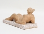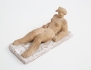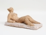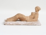 skulptur i form av liggande naken kvinna, terrakotta, vitglaserad sockel, Höganäs, signerad, höjd 11, bredd 22x11